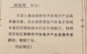 10月28日,为深入推动汽车电子产业高质量发展,常熟市人民政府正式向周晓莺女士颁发聘书,聘请其担任常熟市汽车电…