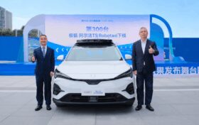 小马智行与北汽新能源合作的第300台极狐阿尔法T5 Robotaxi下线