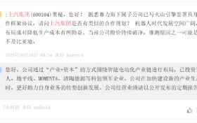 日前,有投资者向上汽集团提问称,“赛力斯下属子公司已与火山引擎签署具身智能业务合作框架协议,请问上汽集团是否有…