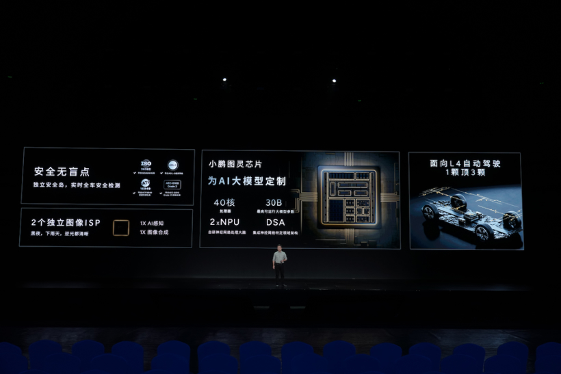 何小鹏称,图灵是全球首颗同时应用于AI汽车、AI机器人及飞行汽车的AI芯片,专为L4级自动驾驶研发设计,其计算能力是现在主流应用的智驾芯片算力的三倍。